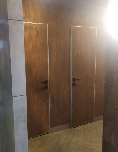 Алюминиевый скрытый короб Invisible собственное производство фабрики aurum doors. Короб сделан полностью из цельнолитого алюминия, без использования дерева в конструкции. Это означает, что при попадании влаги или в помещениях с большой влажностью короб не деформирует и не разорвет. Скрытый короб Invisible можно устанавливать в санузлы и ванные комнаты. Скрытая дверь с алюминиевым коробом – это оригинальное дизайнерское решение, способное подчеркнуть любой интерьер.